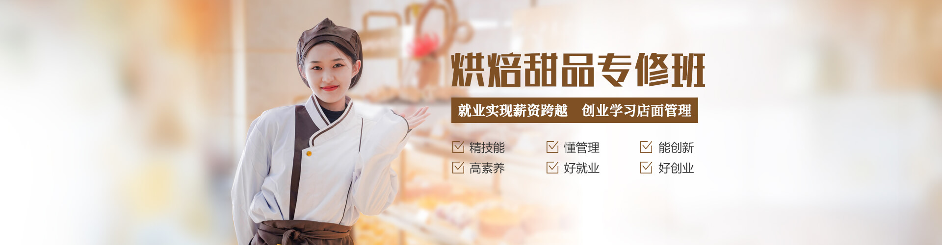 培养精通西点制作,懂经营、善管理,并具备创业能力的人才。